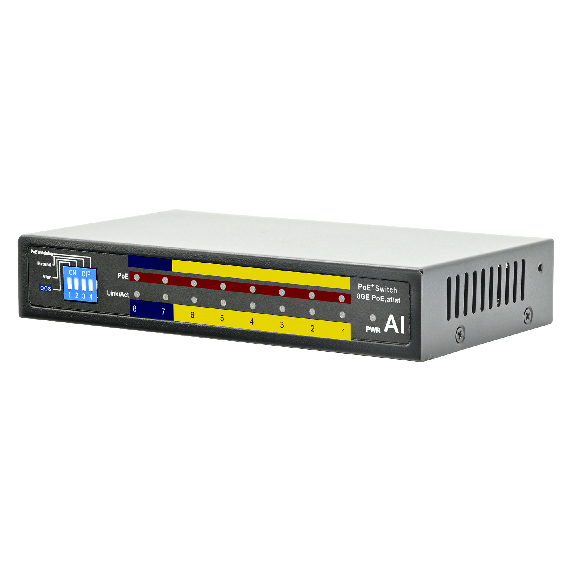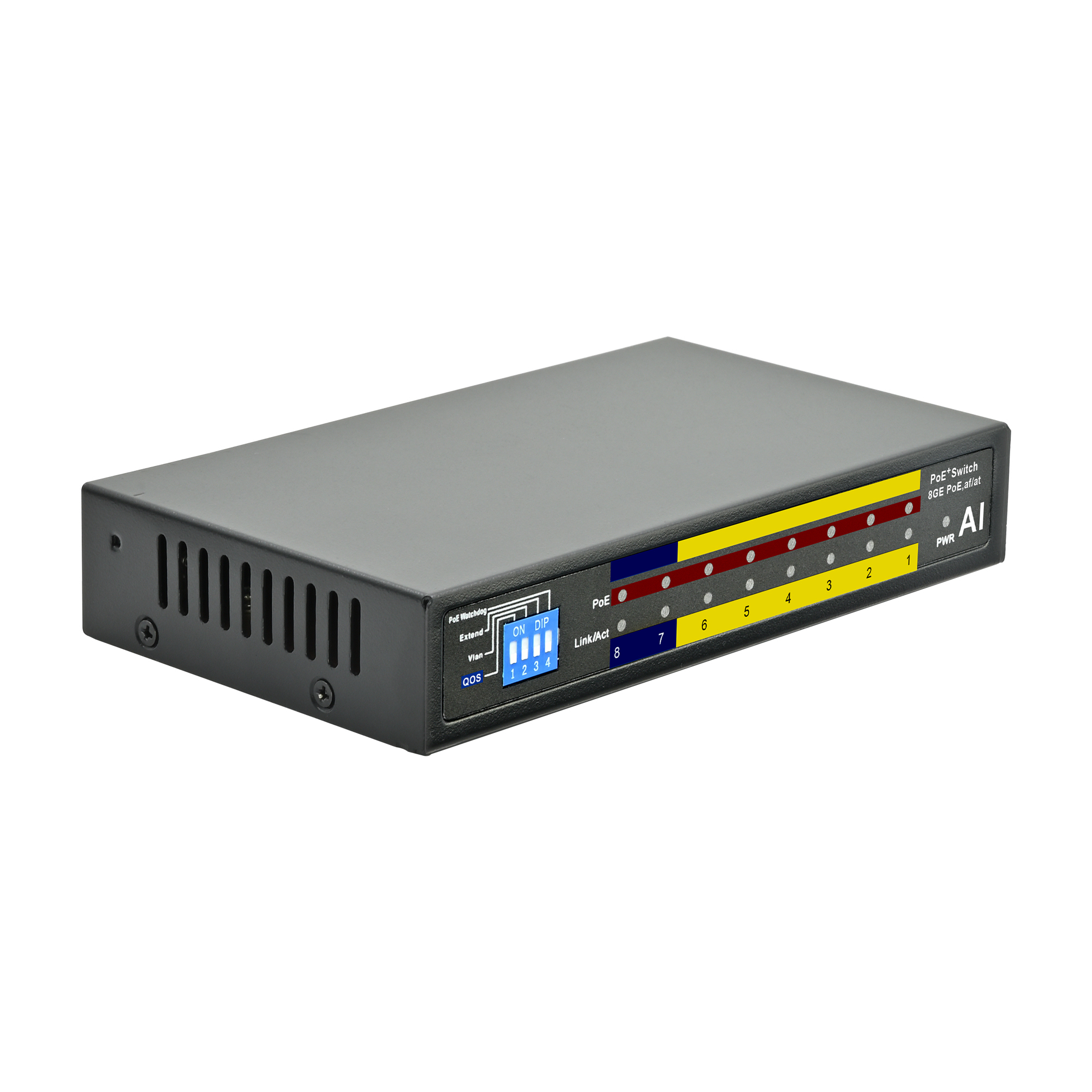 The 8 Port /8 PoE Ethernet Switch is fully integrated to support security monitoring,provides fast packet forwarding capability, as well as