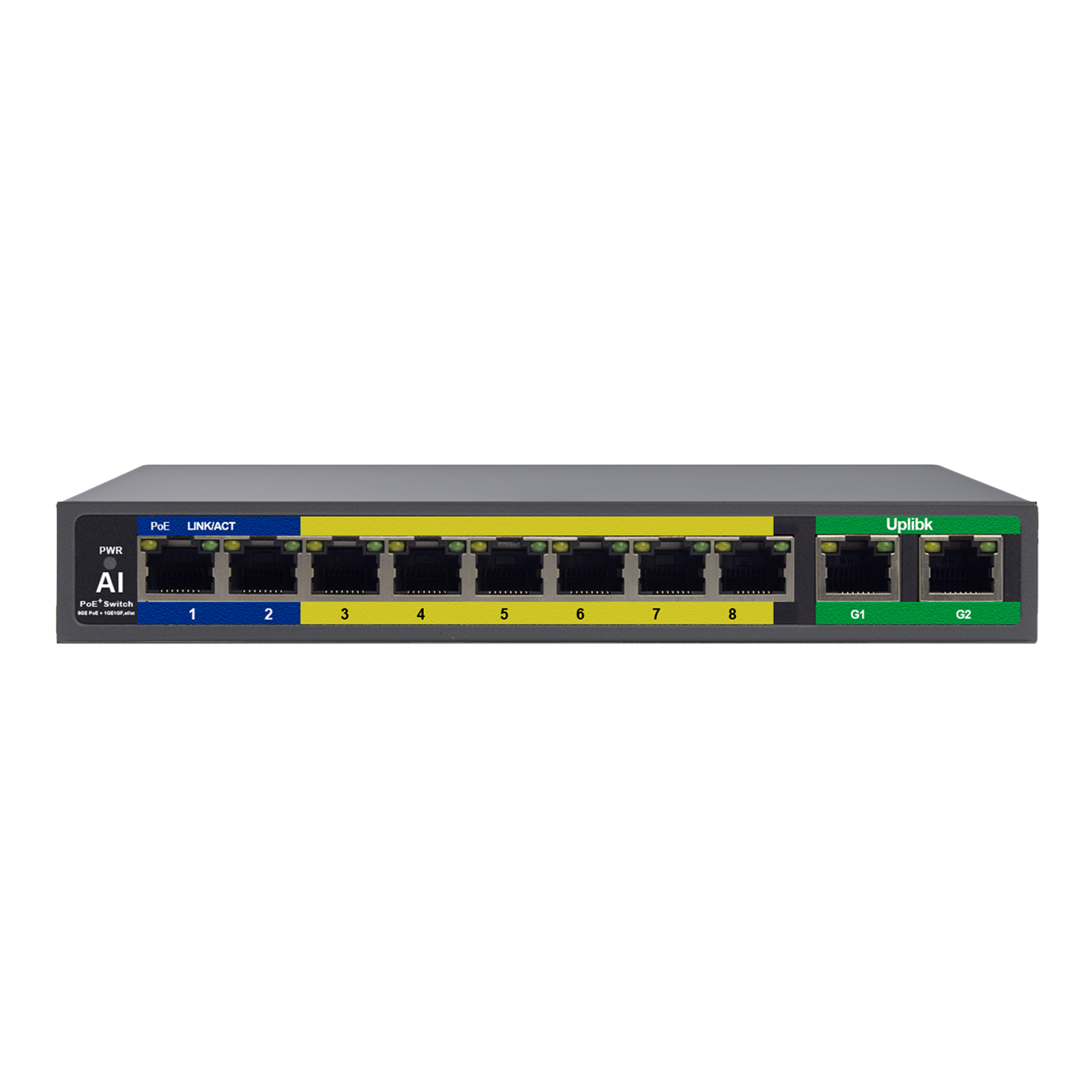 Provides 8 10/100Base-TX ports and 2 10/100/1000 Base-T ports