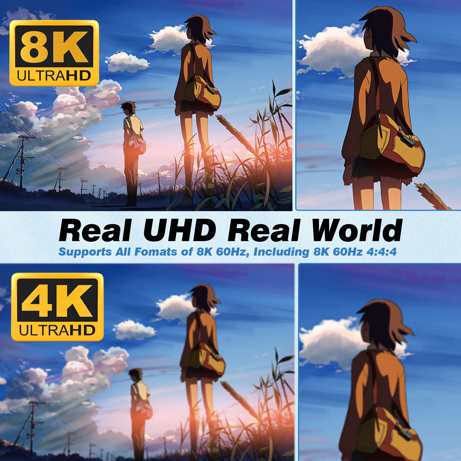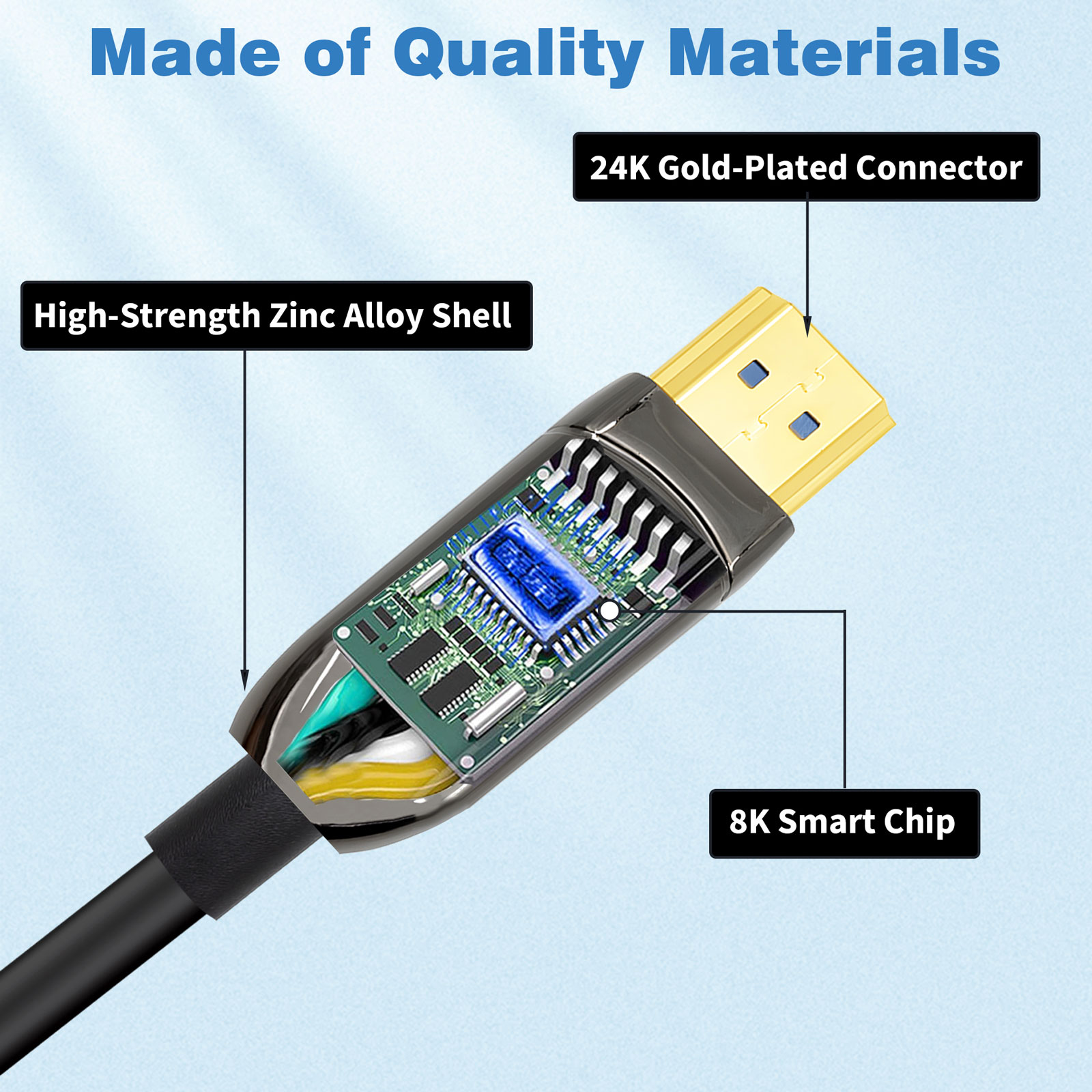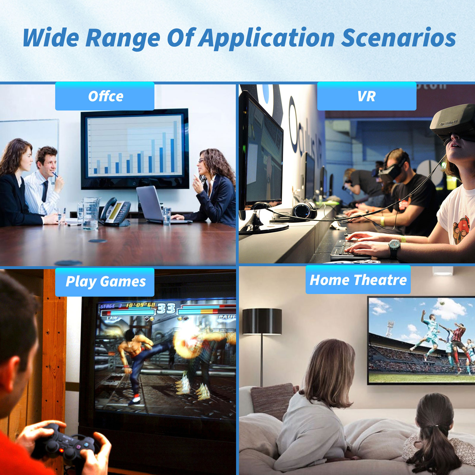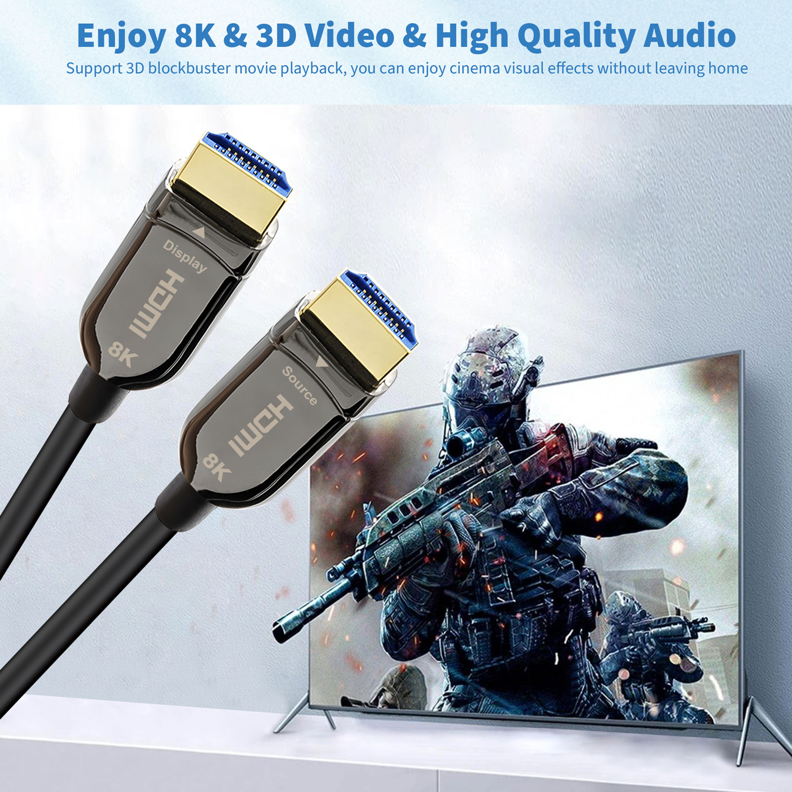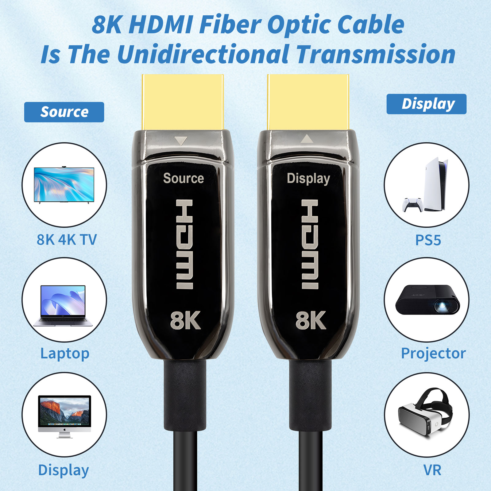 This product adopts professional high -speed interconnection technology similar to data center, supports bandwidth up to 48Gbps, and meets the requirements of 8K video transmission. The product use optical fiber to transmit high-speed audio and video signals, and electronic wire transmits low speed control signals. The wire is light as a whole, and the product is resistant to electromagnetic interference